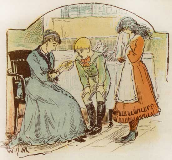 The next morning brought unlooked-for disappointment to the little fellow, for it was rainy and stormy. No going out for Max—he must stay quietly in the nursery. And he looked so very sad about it that mamma was a little surprised: he was usually so cheerful and contented.