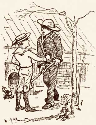 They all stared at her. Yes, he had left one—a very high[Pg 23] one—against a tree. There were some branches he was lopping off, but he had "never thought for to—"