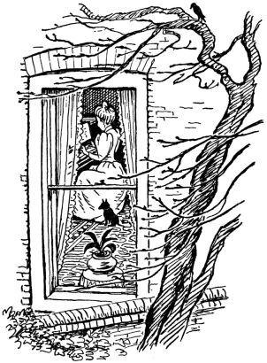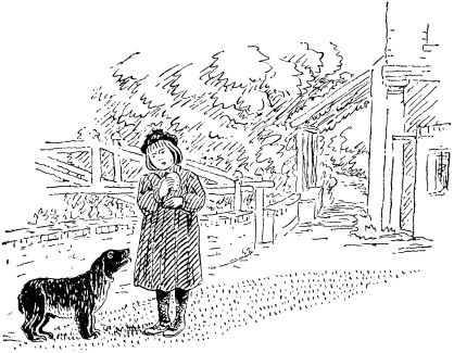 The Backs were a frightening place, even by daylight, because it was there, more than anywhere else, that Mad Dogs were liable to occur; or so my cousin Frances said, and she knew. For she had seen there a very mysterious figure, who was connected with mad dogs: a girl with red-flannel soles to her shoes. (I cannot imagine who she was, unless she was the Goddess of Hydrophobia?) The possibility, the probability, of Mad Dogs was very much in our minds; slinking about, with their red tongues hanging out, slobbering and whining; like Caldecott's picture of the dog it was that died. Of course there were real mad dogs in those days; and sometimes our dogs had to be muzzled for a time; so we had some excuse for our fears.