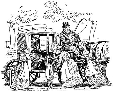 Then there was the rush and rattle of the butchers' traps and their furious little ponies, whom we believed to be fed on meat to make them fierce; and the yellow milk-carts, like Roman chariots, with their big brass-bound churns of milk and their little dippers hooked on at the side; and the hairy-footed shire horses, who drew the great corn-wagons in from the country. And on Saturdays, market days, the farmers came trotting by in their traps; and the carriers' carts plodded in with their slow horses from villages as much as fifteen miles away. Sometimes they were hooded carts, sometimes they were just open carts, with planks for seats, on which sat twelve cloaked and bonneted women, six a side, squeezed together, for the interminable journey. As late as 1914 I knew the carrier of Croydon-cum-Clopton, twelve miles from Cambridge; his cart started at 6.30 in the morning and got back about ten at night. Though he was not old, he could neither read nor write; but he took commissions all along the road—a packet of needles for Mrs. This, and a new teapot for Mrs. That—and delivered them all correctly on the way back.