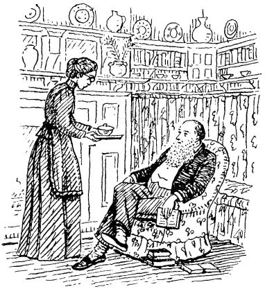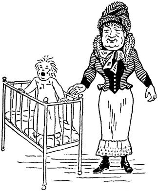 Ruth was the Bishop—or rather an Imp impersonating the Bishop—and she came riding through the garden on to the stage on a tricycle. She was dressed in episcopal clothes, and her long hair was tucked down the back of her neck; but a blue woollen tail hanging out behind betrayed her infernal origin. There had been some trouble about this, and Aunt Ida had only allowed Ruth to act under protest; but whether it was the male dress, or the clerical dress, or the tail, to which she objected, we never knew. There were only near relations in the audience to see the shocking sight, anyhow. The text had also been bowdlerized; for in the original draft, the Bishop had brought with him, as specimens of the handiwork of his only convert, a waste-paper basket, and a pair of bathing-drawers; but during rehearsal an orange had been substituted for the bathing-drawers, by order of the Censor.