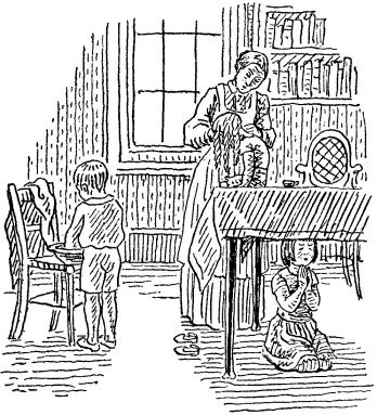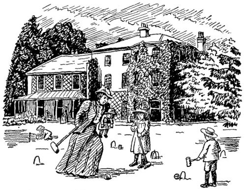 It fairly makes my heart bleed to see photograph after photograph of ourselves as children, playing in the garden in high summer, always in thick, black, woolly stockings and high boots. We wore, too, very long, full overalls with long sleeves, and of course hats or caps of some sort. All the same we were luckier than our cousins, because in warm weather we were sometimes allowed to play out-of-doors with bare feet, and they hardly ever were. There is a pathetic story of Erasmus, Ruth and Nora. They once, in the holidays, found a little brook and, quite innocently, began to paddle in it. Then their poor consciences began to work, and one of them was sent back to the house to ask permission. They were told Certainly not; and they had to put on their black woollen stockings and hot tight boots again.