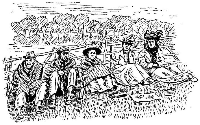 Well, it all went off with the usual kind of grisly brightness, and the picnic part and all its dreary sports were over: the sham cricket with a bun for a ball, the fighting with paddles, the airy badinage about catching crabs: it had all at last drawn to its longed-for close, and everyone was packing up the baskets to go home. I must observe that we liked a Free Picnic, with spontaneous sports and lots of cousins, well enough; it was only the forced labour of a Compulsory picnic which made everything seem so dismal. I hope the guests did not feel it too much; we did try to be agreeable, but I am afraid we were not very good at concealing our feelings.