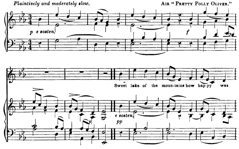 [The sad story of the Earl of Derwentwater, executed in 1716 for participation in the rebellion of the previous year, is well known. The beautiful lake from which he derives his title is surrounded by some of the grandest scenery in England. Few persons will need to be reminded of the beauty of the small cataract of Ladore. The memory of the misfortunes of Lord Derwentwater, and of the beauty of his disconsolate countess, is still preserved in the traditions of the neighbourhood.]