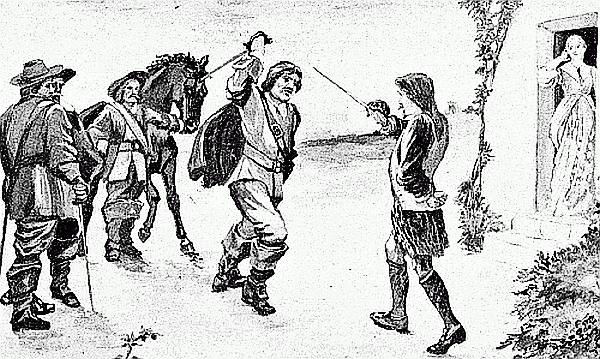 Yet there was that I liked not among the fellows who came thither, nay, even in my friend himself. We have a[Pg 8] proverb in France that the devil when he spoils a German in the making turns him into a Scot, and for certain there was much boorishness among them, which to my mind sits ill on gentlemen. They would jest at one another till I thought that in a twinkling swords would be out, and lo! I soon found that 'twas but done for sport, and with no evil intent. They were clownish in their understanding, little recking of the feelings of a man of honor, but quick to grow fierce on some tittle of provocation which another would scarce notice. Indeed, 'tis my belief that one of this nation is best in his youth, for Kennedy, whom I well remembered as a[Pg 9] man of courage and breeding, had grown grosser and more sottish with his years, till I was fain to ask where was my friend of the past.