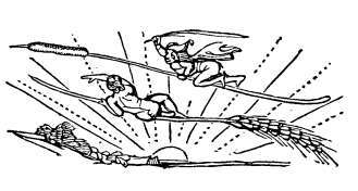 At length his feet grew weary, and his breath failed, which obliged him to give up the chase; yet such was his piety, that unwilling to rest in any attitude but that of prayer, down dropped Father Cuddy on his knees. Sleep, as usual, stole upon his devotions; and the morning was far advanced, when he awoke from dreams, in which tables groaned beneath their load of viands, and wine poured itself free and sparkling as the mountain spring.