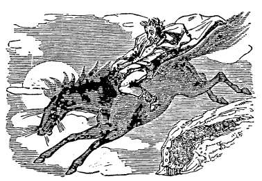"Take that," said the boy, "for a token"—and at the word the white horse struck out with one of his hind legs, and gave poor Robin such a kick in the forehead, that thinking he was a dead man, he roared as loud as he could after his brains, and woke up calling a thousand murders. He found himself in bed, but he had the mark of the blow, the regular print of a horse-shoe upon his forehead as red as blood; and Robin Kelly, who never before found himself puzzled at the dream of any other person, did not know what to think of his own.