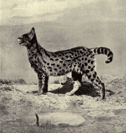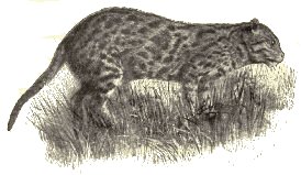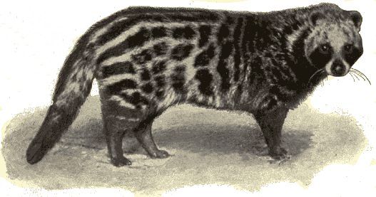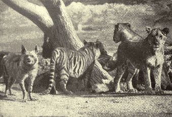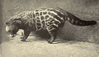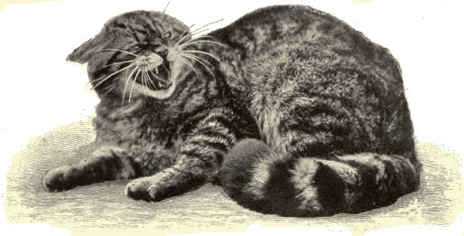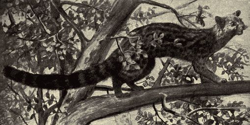 The characteristics of the Cats and their allies are too well known to need description. We will therefore only mention the chief types of the group, and proceed to give, in the fullest detail which space allows, authentic anecdotes of their life and habits. The tribe includes Lions, Tigers, Leopards, Pumas, Jaguars, a large number of so-called Tiger-cats (spotted and striped), Wild Cats, Domestic Cats, and Lynxes. The Hunting-leopard, or Cheeta, stands in a sub-group by itself, as does the Fossa, the only large carnivore of Madagascar. This closes the list of the most cat-like animals. The next links in the chain are formed by the Civets and Genets, creatures with more or less retractile claws, and long, bushy tails; the still less cat-like Binturong, a creature with a prehensile tail; and the Mongooses and Ichneumons, more and more nearly resembling the weasel tribe.