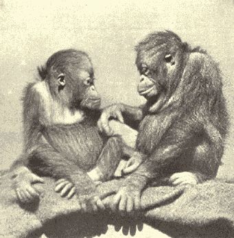 The orang is the least interesting of the three great apes; he lacks the power and brutality of the gorilla and the intelligence of the chimpanzee. "The orang," said its keeper to the writer "is a buffoon; the chimpanzee, a gentleman."