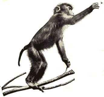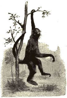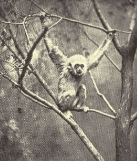 The list of the man-like ape closes with this group. All the gibbons are highly specialised for tree-climbing and an entirely arboreal life; but it is undeniable that, apart from the modifications necessary for this, such as the abnormal length of the arms, the skeleton closely resembles that of the human being. In their habits, when wild, none of these apes show any remarkable degree of intelligence; but their living is gained in so simple a way, by plucking fruits and leaves, that there is nothing in their surroundings to stimulate thought. They do not need even to think of a time of famine or winter, or to lay up a stock of food for such a season, because they live in the forests under the Equator.