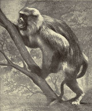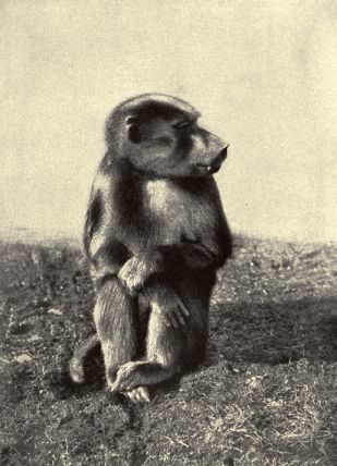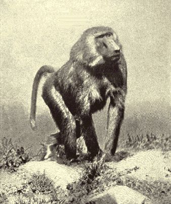 Far the most interesting of the apes in the wild state are the Baboons. Their dog-like heads (which in some are so large and hideous that they look like a cross between an ill-tempered dog and a pig), short bodies, enormously strong arms, and loud barking cry distinguish them from all other creatures. The greater number—for there are many kinds—live in the hot, dry, stony parts of Africa. They are familiar figures from the cliffs of Abyssinia to the Cape, where their bold and predatory bands still occupy Table Mountain. They are almost the only animals which the high-contracting Powers of Africa have resolved not to protect at any season, so mischievous are they to crops, and recently to the flocks. They kill the suckling lambs, and tear them to pieces for the sake of the milk contained in their bodies.