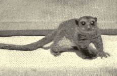 Another group of lemuroids is distinguished from the foregoing by having the second finger of the fore paws either very short or rudimentary. The thumb and great toe are also set very widely apart from the other fingers and toes. A far more striking distinction to the non-scientific eye is their astonishingly deliberate and slow movements. They have no tails, enormous eyes, and very long, slender legs.