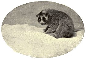 The Slender Loris, an equally curious creature, is only found in Southern India and Ceylon. Its food consists entirely of insects, which it captures by gradual, almost paralysed approach. It has been described as a "furry-coated chameleon." A group of slow lemurs, living in Western Africa, are known as Pottos. They are odd little quadrupeds, in which the "forefinger" never grows to be more than a stump. The tail is also either sharp or rudimentary. They are as slow as the lorises in their movements.