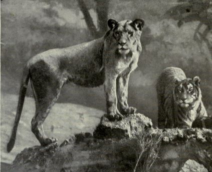 Wherever it has not been possible to get really good pictures of some shy wild creature in its native haunt, living examples have been sought in the great Zoological Gardens of the world—London, Berlin, Antwerp, Florence, New York, Calcutta, Sydney, etc.,—or in the parks of American men of wealth and European noblemen. These have been "posed" as nearly as possible in the surroundings natural to them, and faithful portraits have been obtained. Now and then it was desirable, in order to complete a family history, to include portraits of varieties which are not even known in captivity, and here the museums have been drawn upon and photographs of stuffed specimens and groups, naturally mounted, have been obtained; but these cases are not many, and though less interesting serve their purpose almost as well as the "living pictures" that predominate from end to end of this portrait-gallery of the animal life of the globe.