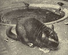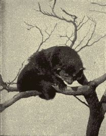The most beautiful and entertaining of all monkeys are these New World species. No person clever at interpreting the ways of animals would fail to consider them far more clever and sympathetic than the melancholy anthropoid apes, while for appearance they have no equals. Probably the most attractive monkey in Europe is a South American one now in the London Zoological Gardens. It was first mentioned to Europeans by Baron von Humboldt, who saw it in the cabin of an Indian on the Orinoco. These forest Indians of South America are gentle creatures themselves. Among other amiable qualities, they have a passion for keeping pets. One who worked for a friend of the writer, with others of his tribe, was asked what he would take in payment, which was given in kind. The others chose cloth, axes, etc. This Indian said that he did not care for any of these things. He said he wanted a "poosa." No one knew what he meant. He signed that he wished to go to the house and would show them. Arrived there, he pointed to the cat! "Pussy," to the Arawak Indian, was a "poosa," and that was what he wanted as a month's wages. Humboldt's Indian had something better than a "poosa." It was a monkey, as black as coal, with a round head, long thickly furred tail, and bright vivacious eyes. The explorer called it the Lagothrix, which means Hare-skin Monkey. The fur is not the least like a hare's, but much resembles that of an opossum. The more suitable name is the Woolly Monkey. The one kept at the Gardens is a most friendly and vivacious creature, ready to embrace, play and make friends with any well-dressed person. It dislikes people in working-clothes which are dirty or soiled—a not uncommon aversion of clever animals.