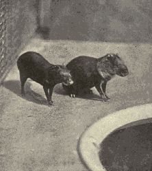 Something should be said of the alleged "speech of monkeys" which Professor Garner believed himself to have discovered. He rightly excluded mere sounds showing joy, desire, or sorrow from the faculty of speech, but claimed to have detected special words, one meaning "food," another "drink," another "give me that," another meaning "monkey," or an identification of a second animal or monkey. He used a phonograph to keep permanent record of the sounds, and made an expedition to the West African forests in the hope that he might induce the large anthropoid apes to answer the sounds which are so often uttered by their kind in our menageries. The enterprise ended, as might have been expected, in failure. Nor was it in the least necessary to go and sit in a cage in an African forest in the hope of striking up an acquaintance with the native chimpanzees. The little Capuchin monkeys, whose voices and sounds he had ample opportunity of observing here, give sufficient material for trying experiments in the meaning of monkey sounds. The writer believes that it is highly probable that the cleverer monkeys have a great many notes or sounds which the others do understand, if only because they make the same under similar circumstances, otherwise they would not utter them. They are like the sounds which an intelligent but nearly dumb person might make. Also they have very sharp ears, and some of them can understand musical sounds, so far as to show a very marked attention to them. The following account of an experiment of this kind, when a violin was being played, is related in "Life at the Zoo": "The Capuchin monkeys, the species selected by Professor Garner for his experiments in monkey language, showed the strangest and most amusing excitement. These pretty little creatures have very expressive and intelligent faces, and the play and mobility of their faces and voices while listening to the music were extraordinarily rapid. The three in the first cage at once rushed up into their box, and then all peeped out, chattering and excited. One by one they came down, and listened to the music with intense curiosity shrieking and making faces at a crescendo, shaking the wires angrily at a discord, and putting their heads almost upside-down in efforts at acute criticism at low and musical passages. Every change of note was marked by some alteration of expression in the faces of the excited little monkeys, and a series of discordant notes roused them to a passion of rage." At the same time a big baboon, chained up near, evidently disliked it. He walked off in the opposite direction to the farthest limits of his chain.