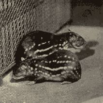 Of these there are several species, all confined to Madagascar and the Comoro Islands. One of the best known is the Ring-tailed Lemur, mentioned above. It is called Lemur Catta, the Cat Lemur, from being so often kept in domestication. The Weasel Lemur, the Gray Lemur, the Mouse Lemur, the Gentle Lemur, the Sportive Lemur, the Crowned Lemur, and Coquerel's Lemur, all represent various small, pretty, and interesting varieties of the group. The Black-and-white Lemur, one of the larger kinds, is capable of domestication. A specimen kept in a London house, where the present writer saw it, was always called "Pussy" by the children. The other small kinds are very like squirrels, mice, weasels, and other creatures, with which they have no connection. It seems as though the curiously limited and primitive fauna of Madagascar tried to make up for its want of variety by mimicking the forms of other animals, and something of the same kind is seen in Australia, where the marsupials take the place of all kinds of ordinary mammals. There are marsupial rats, marsupial wolves, marsupial squirrels, and even marsupial moles. The small squirrel and rat-like lemurs are called Chirogales. Coquerel's Lemur is really a chirogale. It is a quaint and by no means amiable little animal, sleeping obstinately all day, and always ready to growl and bite if disturbed. Its colour is brownish gray and cream-colour. A pair of these, rolled up tightly into balls in a box of hay, will absolutely refuse to move, even when handled. They only feed by night.