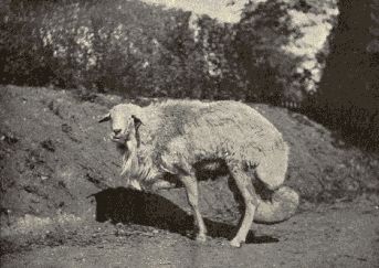 The Fat-tailed Sheep of Persia and Tartary exhibits a curious provision of nature. When food is plentiful, a quantity of fat accumulates on the tail and croup. As the pasture dries up and the animal finds little food, this store of fat is gradually absorbed. Another fat-tailed sheep is found from Syria and Egypt to the Cape. This has a long tail reaching to the ground. In the Egyptian breed the tail is broad throughout; in the Syrian it narrows to a point. The ordinary weight of the Syrian sheep's tail is 15 lbs.; but in some well fattened examples it reaches 70 or 80 lbs. Ludolph saw in Egypt a sheep's tail of 80 lbs. weight. This overgrown tail is a great encumbrance to the animal. In order to lighten the burden, the shepherds fasten under it a small board, sometimes with wheels attached, to make it easy to draw over the ground.