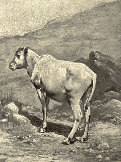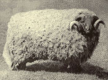 In India and Persia the sheep is sometimes used as a beast of burden. Mr. Lockwood Kipling, in his "Beast and Man in India," says: "Borax, asafoetida, and other commodities are brought into India on the backs of sheep in bags. The flocks are driven in large numbers from Tibet into British territory. One of the sensations of journeying in the hills of the 'interior,' as the farther recesses of the mountains are called by Anglo-Indians, is to come suddenly on such a drove, as it winds, with the multitudinous click of little feet, round the shoulder of some Himalayan spur. The coarse hair bags scrape the cliffside from which the narrow path is built out or hollowed, and allow but scant room for your pony, startled by the hurry and the quick-breathing rush of the creatures as they crowd and scuffle past. Only the picturesque shepherds return from these journeys. The carriers of the caravan (i.e. the sheep), feeding as they go, gather flesh in spite of their burdens, and provide most excellent mutton. . . . In the towns of the plains rams are kept as fighting animals. A Mohammedan swell going out for a stroll with his fighting-ram makes a picture of foppery not easily surpassed by the sporting 'fancy' of the West. The ram is neatly clipped, with a judicious reservation of the salient tufts, tipped with saffron and mauve dye, and besides a large collar of blue beads it wears a necklace of hawk-bells."