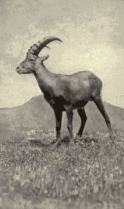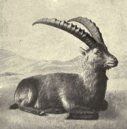 Of the Ibex, perhaps the best known of all the wild goats, several species, differing somewhat in size and in the form of their horns, are found in various parts of the Old World. Of these, the Arabian Ibex inhabits the mountains of Southern Arabia, Palestine, and Sinai, Upper Egypt, and perhaps Morocco. The Abyssinian Ibex is found in the high mountains of the country from which it takes its name. The Alpine Ibex is now extinct in the Swiss Alps and Tyrol, but survives on the Piedmontese side of Monte Rosa. The Asiatic Ibex is the finest of the group; its horns have been found to measure 54¾ inches along the curve. This ibex inhabits the mountain-ranges of Central Asia, from the Altai to the Himalaya, and the Himalaya as far as the source of the Ganges.