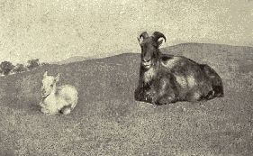 Though the dividing-line between the Sheep and Goats is very indistinct, some differences are of general application. The goats are distinguished by the unpleasant "hircine" odour of the males, and by beards on the chins of the same sex, by the absence of glands in the hind feet, which sheep possess, and by certain variations in the formation of the skull. The difference between the temperament of the sheep and goats is very curious and persistent, showing itself in a marked way, which affects their use in domestication to such a degree that the keeping of one or the other often marks the owners as possessors of different degrees of civilisation. Goats are restless, curious, adventurous, and so active that they cannot be kept in enclosed fields. For this reason they are not bred in any numbers in lands where agriculture is practised on modern principles; they are too enterprising and too destructive. Consequently the goat is usually only seen in large flocks on mountain pastures and rocky, uncultivated ground, where the flocks are taken out to feed by the children.