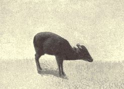 The Four-horned Antelope is the Indian representative of the African duikers, and is found along the foot of the Himalaya from the Punjab to Nepal, and in suitable localities throughout the peninsula of India. It frequents wooded hills, but avoids dense jungle. Like its nearest allies, the duikers, it is solitary in its habits, more than two of these antelopes seldom being seen together. The growth of four horns on the skull of this antelope and on certain breeds of domesticated sheep is a curious fact which has not roused as much comment as it deserves.