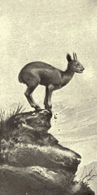 Turning to the second sub-family, we may select the Klipspringer as the most characteristic species to describe. This beautiful little animal, which is often called the African Chamois, is found in suitable localities from the Cape to Abyssinia. In the southern and northern portions of its range the klipspringer is an inhabitant only of rugged mountain-ranges, and ascends to a height of 9,000 or 10,000 feet above sea-level. In the more central regions of its habitat, however, although it always lives amongst rocks, and thoroughly justifies its name of "rock-jumper," it is often found in regions where there are no high mountain-ranges. It used to be very common in Matabililand, both in the Matopo Hills and on the isolated granite kopjes which are so numerous in that country, and usually are not more than 200 or 300 feet in height. In Mashonaland I have found it living amongst granite rocks in the beds of the larger rivers, and actually on the same level as the surrounding country; whereas on Wedza, a great mountain-mass of slate and ironstone, which rises to a height of about 2,000 feet above the surrounding country, and to the top of which I once climbed, I did not see any klipspringers. The hoofs of this little animal are curiously different from those of any other African antelope, being remarkably short and small, with very deep hollows. This adaptation to its requirements enables the klipspringer to obtain a foothold on any small projecting piece of rock and to climb in a series of little jumps up the faces of cliffs which seem almost perpendicular.