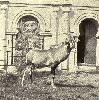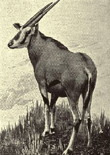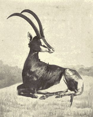 Coining now to the Sable Antelope group, we find an assemblage of antelopes which are all of large size and handsome appearance, and in all of which both the males and females are horned. With the single exception of the Beatrix Oryx, which inhabits Arabia, all these antelopes are denizens of Africa. One species of the group, the Bluebuck, which appears to have been entirely confined to the mountainous districts of the Cape Peninsula, became extinct during the first decade of the last century. Little is known as to the life history of this animal, but it was undoubtedly nearly allied to the larger and more handsomely marked Roan Antelope. This latter animal once had a more extensive range than any other antelope, as it was found in almost every part of Africa south of the Sahara, with the exception of the Congo forest region. It has now been exterminated in the more southerly portions of the country, but from the Limpopo to the Upper Nile, and thence to the Niger, it is still to be found wherever the surroundings are suitable to its requirements.