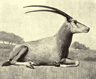 Nearly related to the antelopes of the Oryx group in many essential characteristics, yet at once distinguishable by its spiral horns and broad reindeer-like feet, the desert-haunting Addax has been placed in a separate genus, of which it is the sole representative.