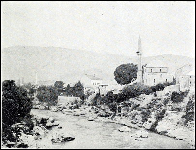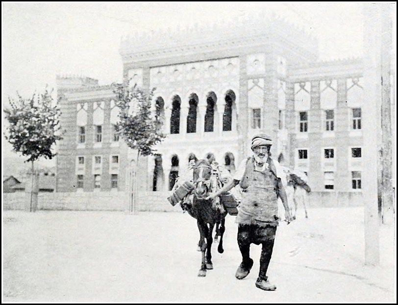 [95] This mosque is the largest and handsomest in Sarajevo. The Ottoman General, who conquered Bosnia in the fifteenth century, spent untold money in rendering it beautiful, and succeeded so well that many critics assert it to be superior to even the finest of the mosques of Constantinople. Usruf Bey and his wife are interred in a small temple adjoining the mosque.