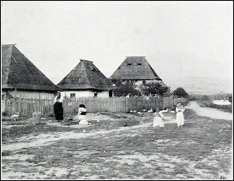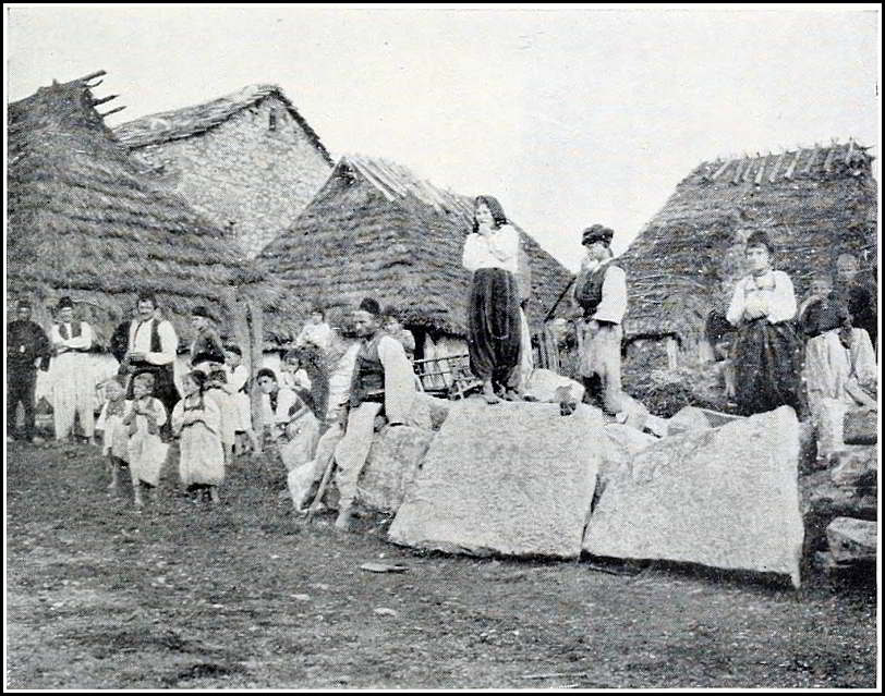 [97] The Zadrugas—communal groups of houses—are enclosed within a high palisade called a palanka, formed of stakes, from ten to eleven feet in height, wattled together and of great strength. The palanka is, probably, the most ancient form of fortification known. Behind these palisades families reside in patriarchal manner, secure from robbery or wolves. But many of these communal households are breaking up. Laws have been passed which allow of the dissolving of the Zadrugas (which was formerly forbidden). This form of living was universal throughout Serbia so long as the economic life of the country was undeveloped. But foreign and modern ideas have done much to undermine the ancient system. Much property, once possessed by families in common, has been broken up, often resulting in disaster to individuals.