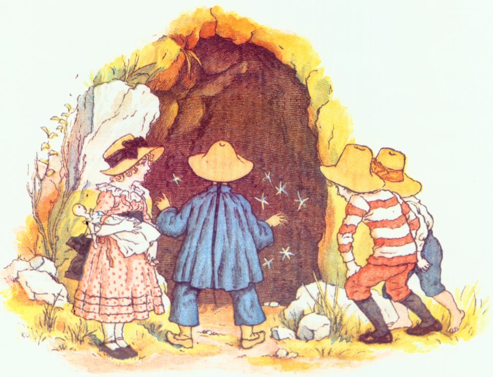 Meantime the children had reached the goal and stood before the opening of one of the tunnels. Then these four heroes who had looked with cheerful levity on the deadly peril of their descent became suddenly frightened at the mysterious darkness of the cavern and turned pale at its threshold.