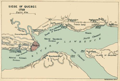 The general position of the French may be summed up briefly. First, and most important of all, they had to hold the line of the St Lawrence for a thousand miles in from the sea. Here were their three chief positions: Louisbourg, Quebec, and Lake Champlain.