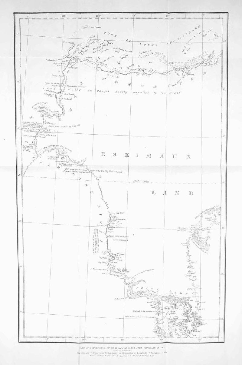 MAP OF COPPERMINE RIVER As surveyed by Sir John Franklin in 1821. From “Franklin’s First Journey,” London, 1823.