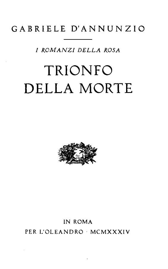 Tu ritroverai dunque, o Cenobiarca, in questa prosa che ti ho scritta, qualche precisa imagine e qualche nobile ritmo. Durante un lustro io ho portata in me questa prosa per arricchirla e per addensarla. Come negli antichi Trionfi della Morte il pittore adunava le fuggitive grazie della Vita, così in questo Trionfo io più volte