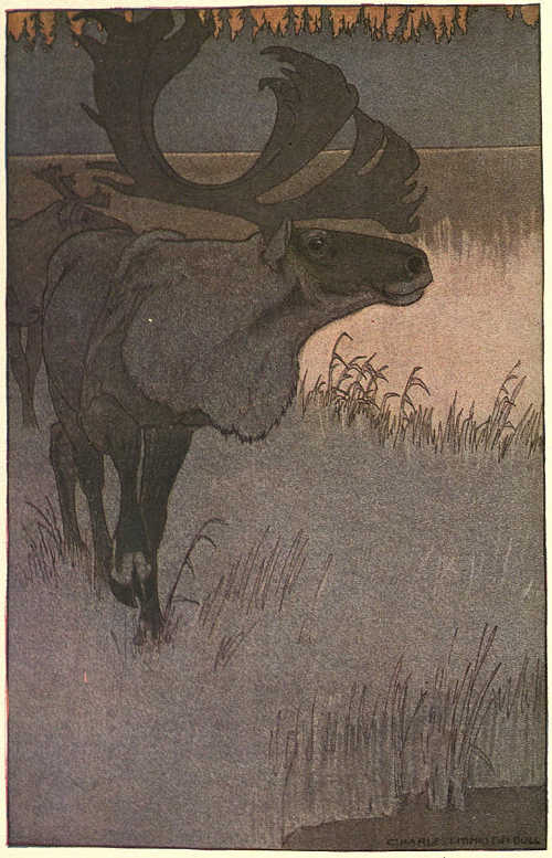 THE LEADER OF THE CARIBOU HERD . . . RETURNED THE STALLION’S INQUIRING STARE WITH A GLANCE OF MILD CURIOSITY.—Page 122.