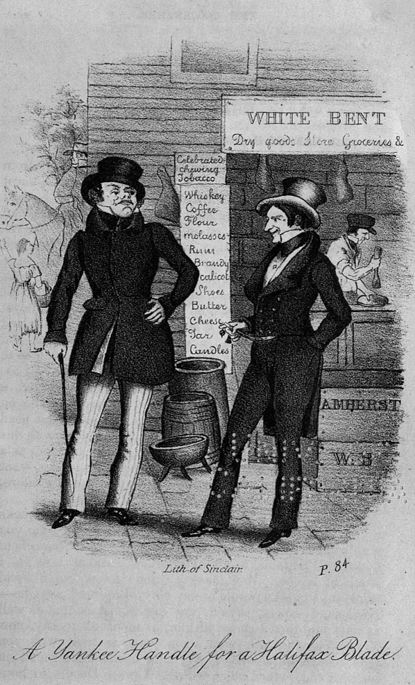 What a pity it is, Mr. Slick, (for such was his name) what a pity it is, said I, that you, who are so successful in teaching these people the value of clocks, could not also teach them the value of time. I guess, said he, they have got that ring to grow on their horns yet, which every four year old has in our country. We reckon hours and minutes to be dollars and cents. They do nothing in these parts but eat, drink, smoke, sleep, ride about, lounge at taverns, make speeches at temperance meetings, and talk about “House of Assembly.” If a man don’t hoe his corn, and he don’t hoe a crop, he says it is all owing to the Bank, and if he runs into debt and is sued, why he says the lawyers are a curse to the country. They are a most idle set of folks, I tell you.