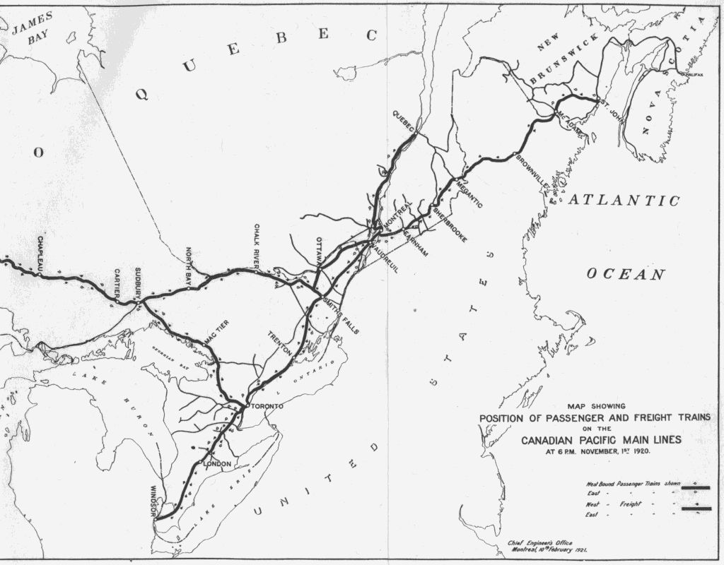 And now the curtain is rolling down, for seventy-three years make a very long act. Recalling three score and ten of them—thirty-three of which have been spent in the service of the company—remembering the all-important events that have happened during that period, and the radically changed conditions of life and living, remindful of the numerous retirements and demises of fellow-workers in the world-wide vineyard of the C.P.R., one cannot but realize that the corridors of the company’s offices will not long be trodden by the older ones of this generation, and that many of us will soon perhaps not even be a memory. With free one-way transportation to the Great Beyond, and a full consciousness of all our good deeds and misdeeds, of the things we should have done and have not done, and of the things we should not have done but did, with no pretensions to having been too good, nor apprehensions of having been too bad, and with a solemn belief that if we were unable always to be right, we sought to be as nearly right as we could, we shall fearlessly face the great overshadowing problem: “Where do we go from here?” The answer will come from the unknown world.