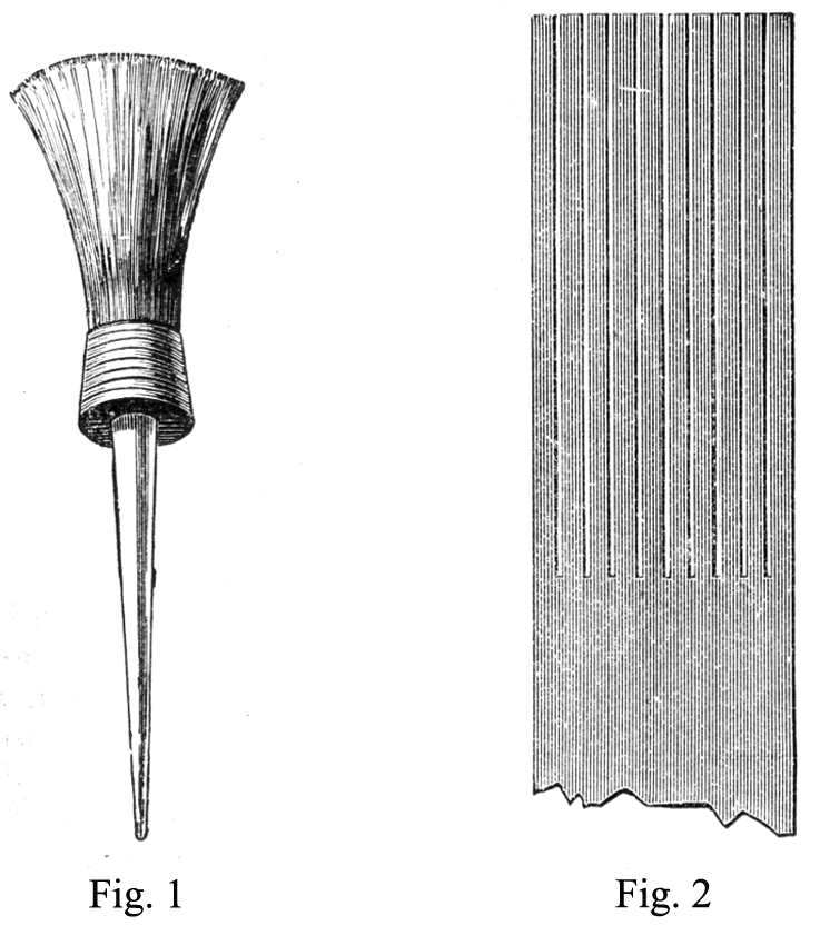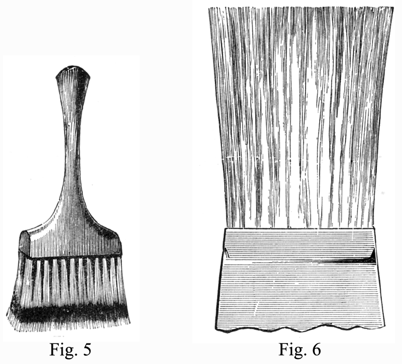 For the practice of graining, some of the house painter’s usual tools are necessary, as well as a few special ones. The ordinary dusting brush (Fig. 1) must be obtained.