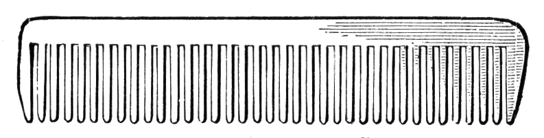 The more familiar hairdresser’s comb (Fig. 4), though not indispensable, is a useful tool for dividing the long hair of a thin overgrainer when it is charged with water-colour. It costs only a few pence, and it is as well to obtain it. Some workmen divide the hair of overgrainers with their fingers.
