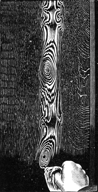 Overgrainers are made in several varieties—such as the castellated, the knotted, and the flat hog-hair—some workmen preferring one kind, and some another. For the fine wavy hair-line seen in bird’s-eye maple, is used a sable tube overgrainer, which is like a number of long sable pencils that have been fastened together in a row with a space between each. This overgrainer gives a number of fine lines at one stroke, and by holding the brush at different angles the distances between the lines may be varied. 15