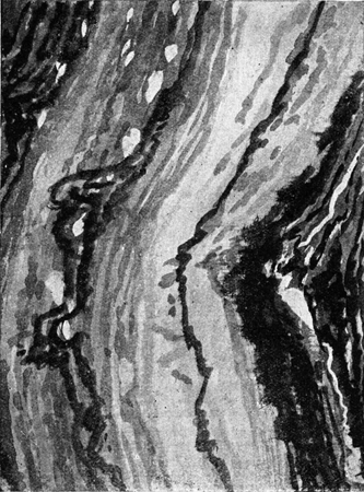 Graining as a distinct branch of house decoration has been successfully practised for more than a hundred years, although it did not arrive at the zenith of its popularity until about fifty years ago. At that time, the efficient imitator was regarded as somewhat of an artist, and as such gained royal patronage. There still exist marble imitations which, under the personal direction of the late Prince Consort, were executed upon the walls of certain portions of Buckingham Palace nearly fifty years ago. More recently—perhaps in consequence of the disapproval of the art by the late John Ruskin, who wrote that “There is no meaner occupation for the human mind than the imitation of the stains and striæ of wood and marble”—the adoption of graining or marbling in the embellishment of a building came to be considered as an exhibition of artistic ignorance. At the present day, however, this disfavour has largely abated. It is the opinion of decorative artists of the front rank that 10 such imitations are permissible and commendable, provided they are introduced consistently with utility and common sense—that is to say, where the genuine article could properly be used. No unbiassed person of intelligence will deny that this is a rational view of the matter, since, if graining and marbling be objected to solely on account of their being “shams,” what must be thought of cheap wood stained to imitate a costly one, of plaster imitations of carved stonework, or of a picture frame treated to represent gold? All three are undeniable “shams,” but yet have universal approbation. Therefore, provided graining is done from nature, is governed by taste, and represents an effort to reproduce the beautiful in nature, there seems to be no reasonable objection to the work. Depth, grace, vigour of execution, variety, fidelity to nature—indeed, every artistic virtue can be applied to good graining.