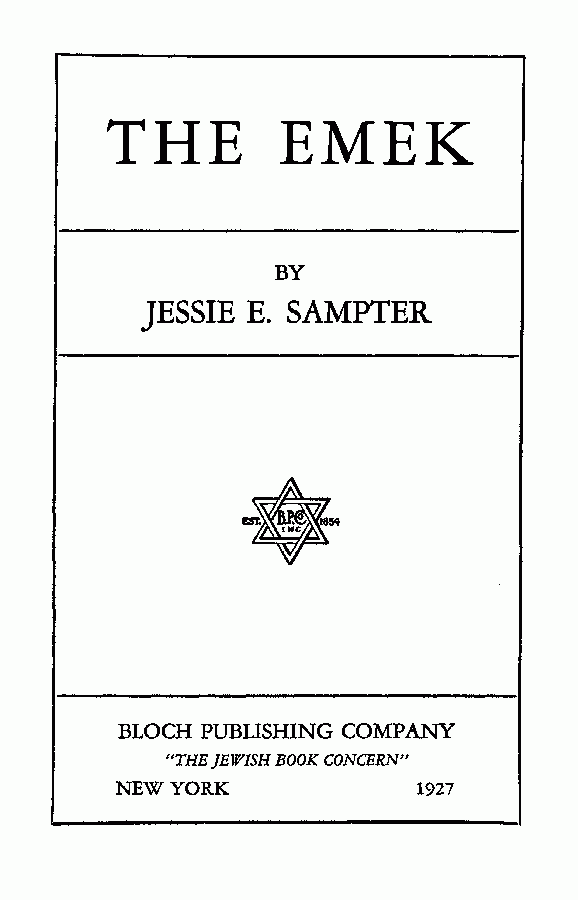 “The Emek” has been published serially in The New Palestine. “The Jewish National Fund” made possible the extended trip and the intimate knowledge gained in the Valley of Jesreel among the young men and women, most of them college-bred, the recent immigrants who with “black labor” are working the earth and building the villages of new-old Palestine.