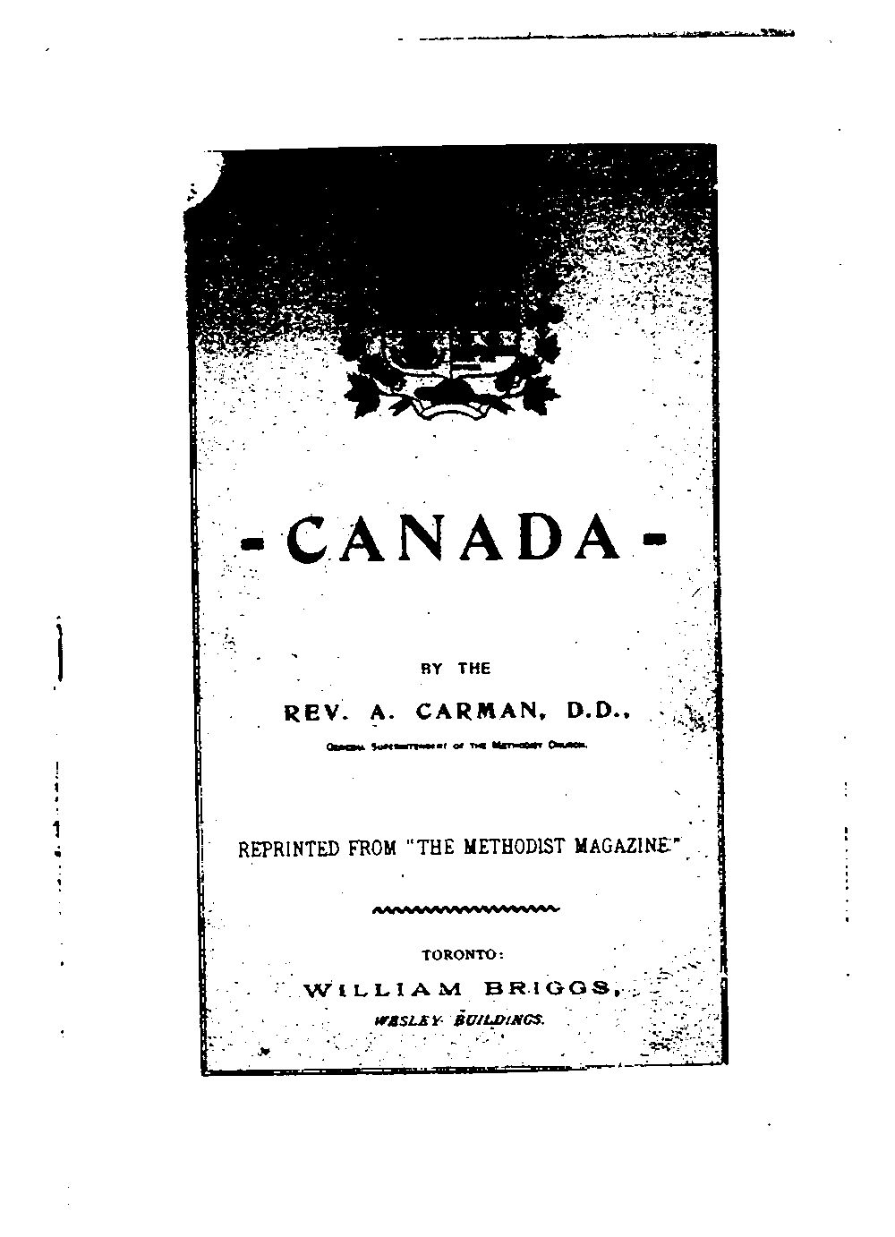 I wrote these lines about thirty years ago, when I had more hope, but not more love, of Canada, the land of my birth, the land of my sires, the land of my pride and joy, than I have to-day. Party strife—which has since well-nigh been our ruin—was then bitter enough to be sure; but we had not been yet flooded with political corruption in the high places of the State, nor in the lower grounds of the electorate submerged and soaked in the sediment of public debauchery. Were I to undertake such a task now, the wounded wing would make heavy flight, and possibly lose its way in the stenchful mists of the common bog. Would that a kind Providence would vouchsafe a great deliverance to this great and noble Dominion, committed to our care even by blood! Then might be realized under the spirit and constitution of the United Empire Loyalists the dream of my youth, the strong desire of my manhood, and the lingering picture of coming strength, righteousness and integrity; of public fidelity and national prosperity, that, somehow or other, even yet haunts my convictions, my prayers, and my hopes. The heathen Roman, Cicero, almost in anguish, cried, “Never despair of the Republic.” Yet by Catilines and corruption his beloved Republic was broken and has gone down the abyss. Possibly, however, the moral government of the world is so changed, that despite Catilines and corruption, a Christian Canadian may cherish patriotism, courage and faith. Hence, on request, I furnish these lines for the Methodist Magazine. A. C. |