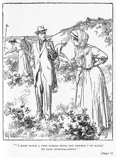 "Please don't move," she exclaimed, as though her coming were the most natural thing in the world. "I am going to sit down with you, if I may!"