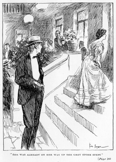 Borrowdean, who left the study a madman, was a sane person the moment he began to descend the stairs and found himself face to face with a tall, heavily cloaked woman. The flash of familiar jewels in her hair, something, perhaps, in the quiet stateliness of her movements, betrayed her identity to him. His heart gave a quick jump. A sickening fear stole over him. He barred the way.