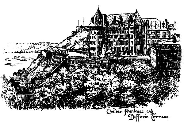 The first glimpse of Quebec, whether from the River, Point Lévis, or Beauport, shows grey bastions and battlements above all other buildings, and it will be strange if further knowledge of the place does not remind you more and more of the warlike times gone by. The very notices in the shop-windows—bilingual and giving to the beginner in the Gallic tongue of our compatriots a pleasing sense of walking in the pages of a dictionary—are a reminder of the long struggle between French and English for the domination of this continent. The driver of your calèche (if you elect to make your first tour of the city in that quaint modern imitation of a quainter prototype) will take care that you miss nothing of the military flavor of the place.