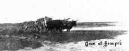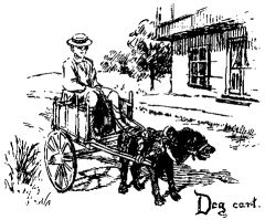 Along these roads comes the oddest assortment of vehicles ever seen, I should think, in one district of the Dominion. The habitant carries home his hay in a two-wheeled cart, fitted with a rack and drawn by a rough pony or a yoke of deliberate oxen; and he rides to church or market in a springless conveyance, which is a kind of grotesque compromise between a “top-buggy” and a “buckboard.” When coming from work, however, he contents himself with a humbler vehicle, rattling down the stony slopes at a surprising pace in a little cart drawn by a lean, rough-coated, stout-limbed dog.