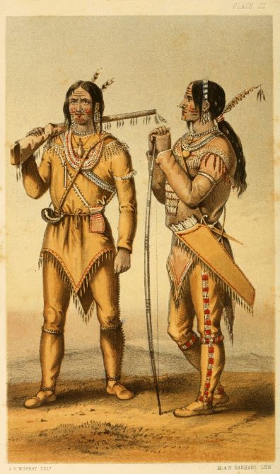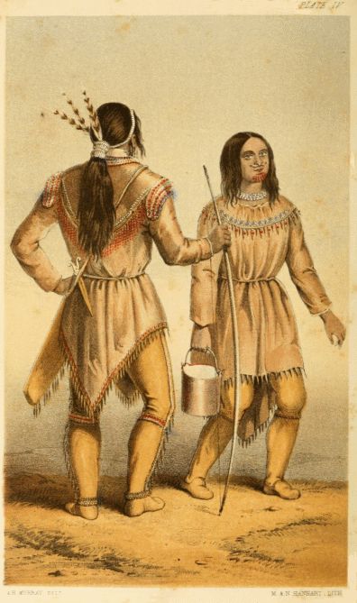 In winter, shirts of hare-skin are worn, and the deer-skin pantaloons have the fur next the skin. On their journeys, travellers carry with them their dress clothes, which they put on every evening after encamping, and when they come to the trading posts. None of the neighbouring nations pay so much attention to personal cleanliness and appearance.