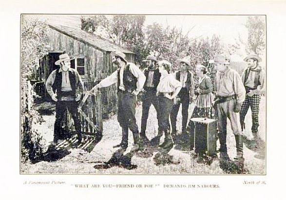 There had been the usual mealtime silence of the cattle hands, broken only by rasp or chatter of steel on tin; but as the tall girl’s shadow fell at the door of the log house Jim Nabours, foreman of Del Sol, rose at his place. Fifteen other men pushed back their chairs nervously, staring at the boss as though caught in some overt criminal act. In the occupation of eating a regulation breakfast of beef and beans, cattle hands, time out of mind, have asked no aid and invited no company.